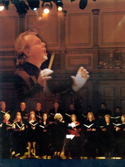 | "Pro Musica Chamber choir has achieved a unique position in the choral life of West Sweden. A refined instrument, developed through working with the 20th century's repertoire, where tone and timbre is especially glowing and powerful and where expression is boldly expressive" Dagens Nyheter The Choir consists of 40 vocalists, many of whom are professional musicians and music teachers. Together with their conductor Jan Yngwe, they have toured all of Europe as well as Japan (1989), Cuba (1995) and South Africa (1999). Pro Musica has also received many prizes in international choral competitions. |